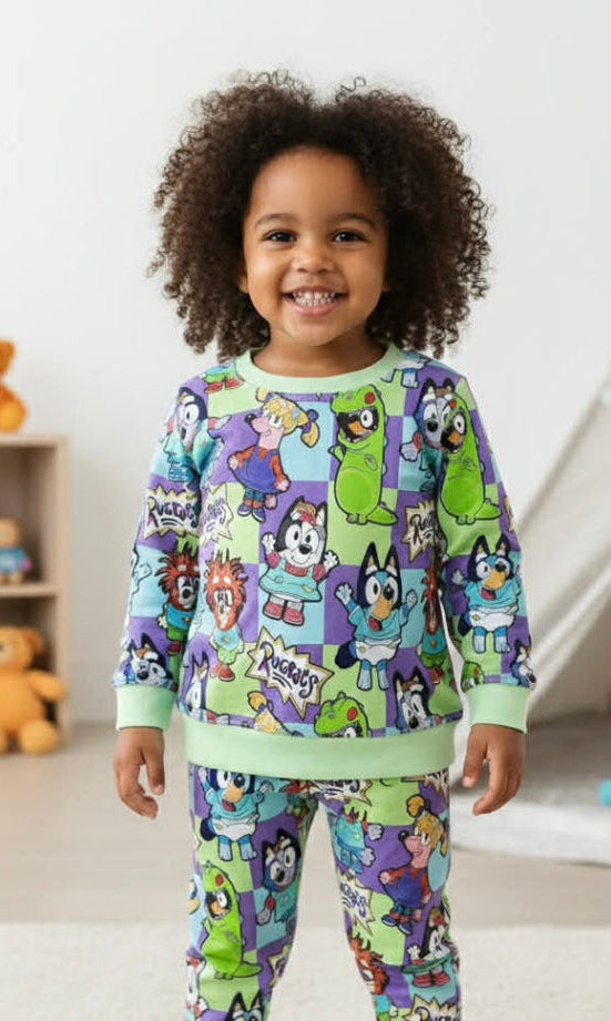 Shirt and Pants with stretch to last multiple sizes. Allows your child to run and play hard while being in soft comfortable clothing.