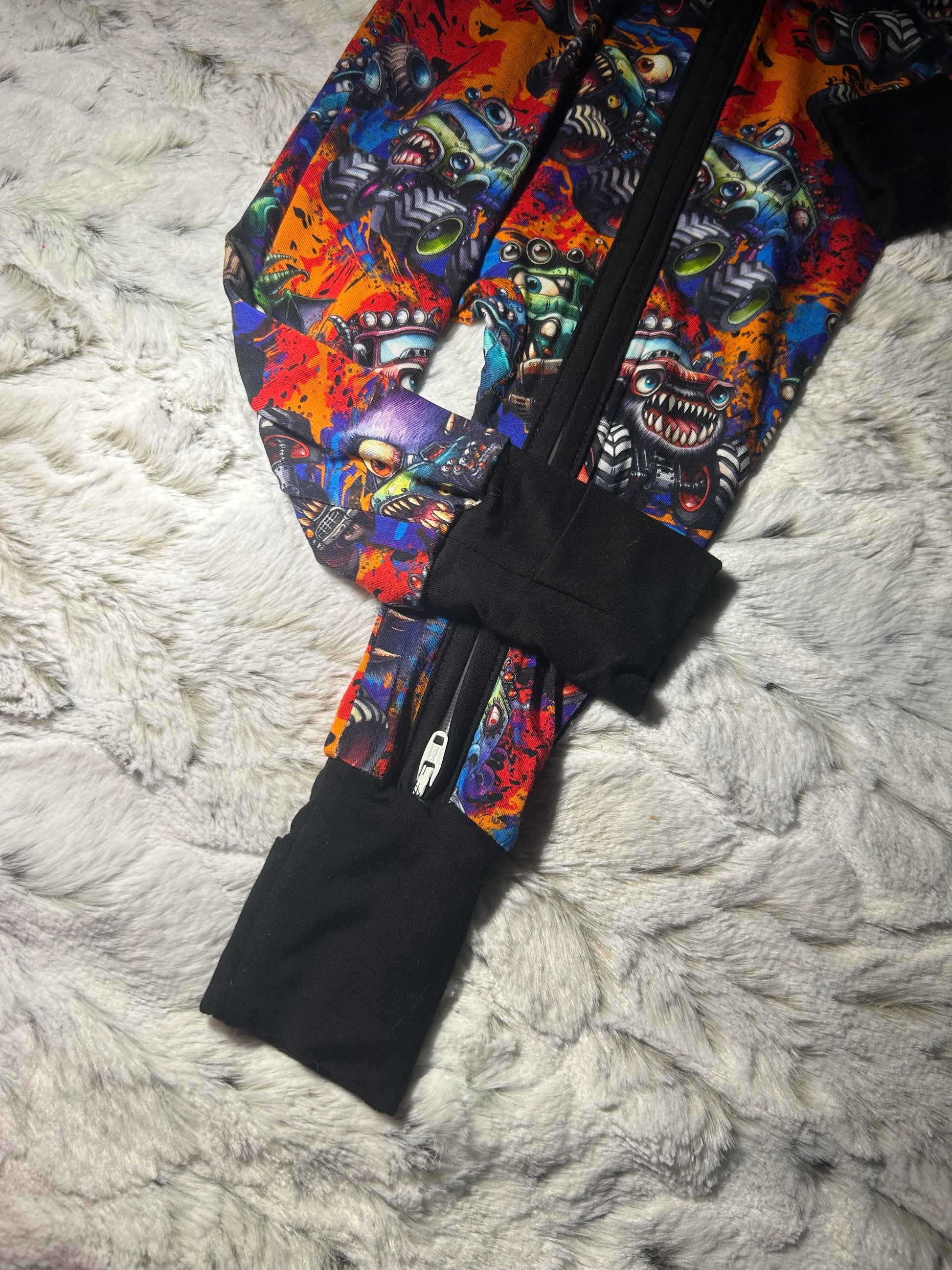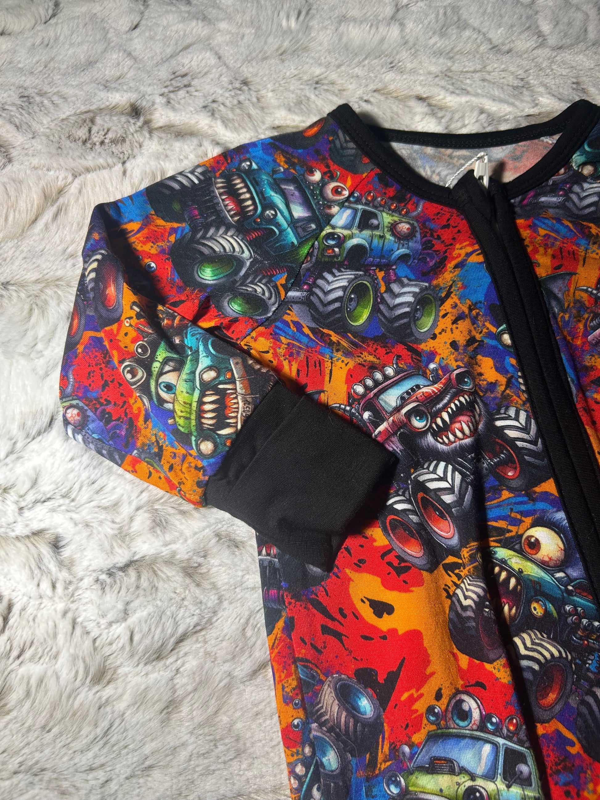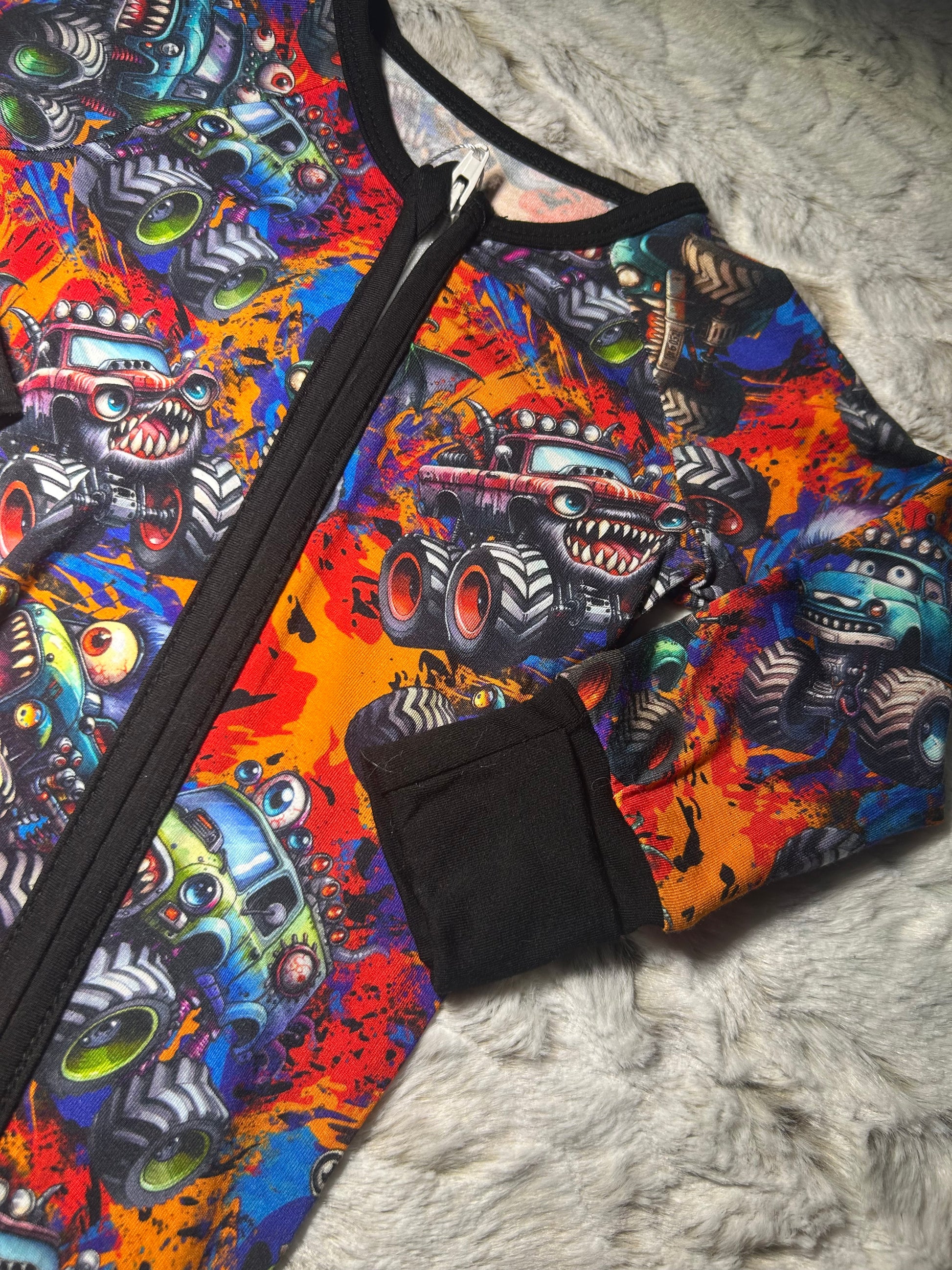 Get ready to rev those engines and roar into bedtime! Our Monster Truck Mash-Up pieces feature high-energy, custom prints where heavy-duty trucks meet your favorite friendly monsters. Whether you choose the two-piece set or the convenient zippy, these are perfect for little ones who love things that go "vroom" and "roar."