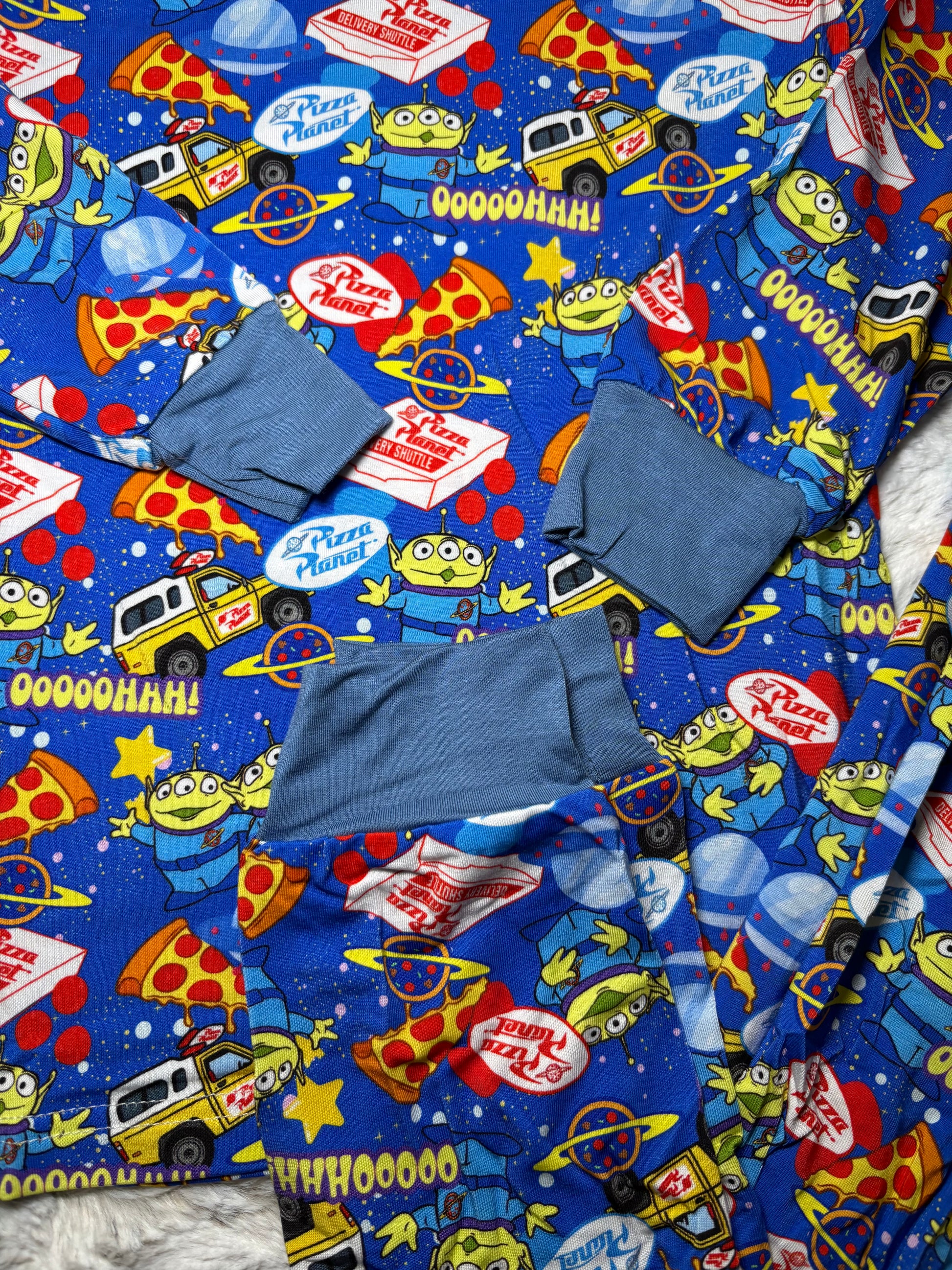 • Fun & Vibrant Design: Featuring a playful "Pizza in Space" motif with flying slices, planetary take-out boxes, and alien friends, this set turns the bedtime routine into an adventure.